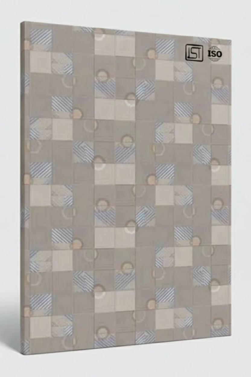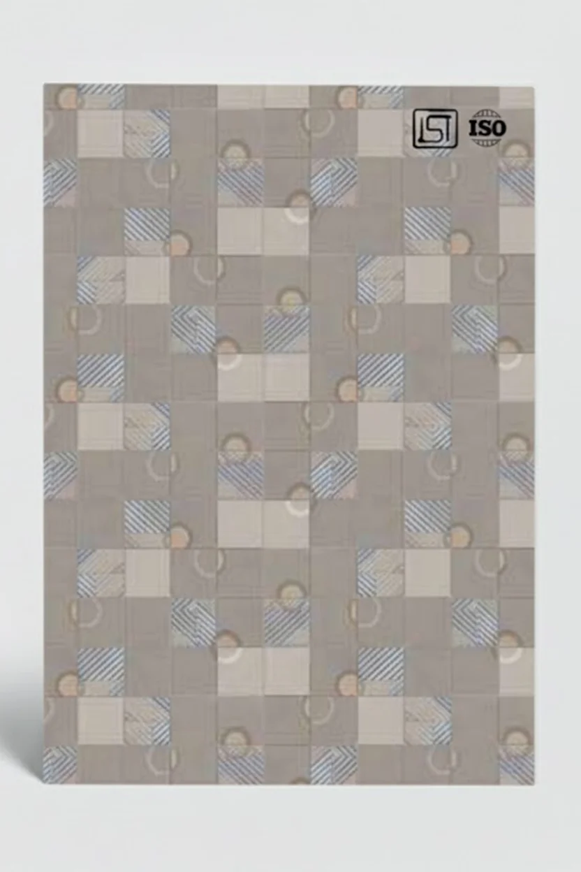 Luxurious light grey premium digital laminate featuring a smooth texture with modern check style tile design in high-gloss finish, perfect for modern interiors.